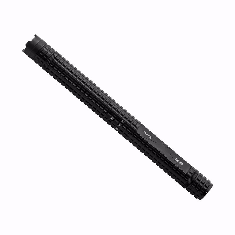 強光手電為前置開關(guān)、防滾動圓柱形結(jié)構(gòu),由六角攻擊頭蓋、照明單元、握柄(包括開關(guān)充電…